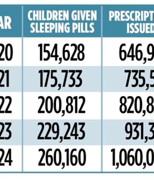 Mais de um milhão de prescrições de comprimidos para dormir são dispensadas às crianças por ano, à medida que um número recorde luta para passar a noite sem ajuda química.