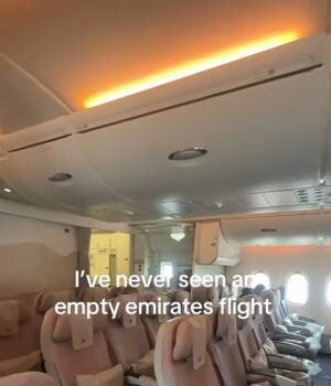 Fotos e vídeos compartilhados nas redes sociais mostram fileiras de assentos vazios no avião com destino a Dubai, com a legenda: “Nunca vi um voo vazio da Emirates”.