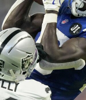 Dulin foi o principal alvo do drama de se mover profundamente ao longo do lado esquerdo no final do terceiro trimestre, Jones Jonathan duplicou uma transferência para correr para trás. Jones colocou as pernas e desceu o campo, desenvolveu Dulin Raiders de Las Vegas Cornerback Q. Blue Kelly, a linha de 10 jardas está descendo a bola dentro da linha.