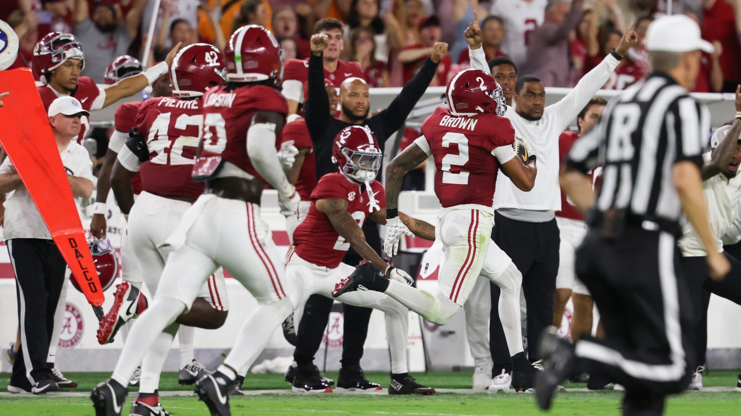 A escolha seis de Brown deu ao time de Callen DeBoer uma vantagem de 23-7 no intervalo contra seu antigo adversário da SEC.