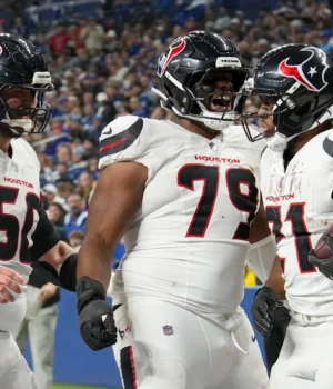 Depois que CJ Stroud se conectou com Nico Collins para 18 rebatidas, Nick Chubb coroou a melhor investida do time com uma corrida de touchdown de 4 jardas para colocar os texanos em 10–6. Colts de Indianápolis Faltam cinco minutos para o fim do segundo tempo.