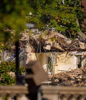 Trabalhadores derrubaram a fachada da Ala Leste da Casa Branca na quarta-feira