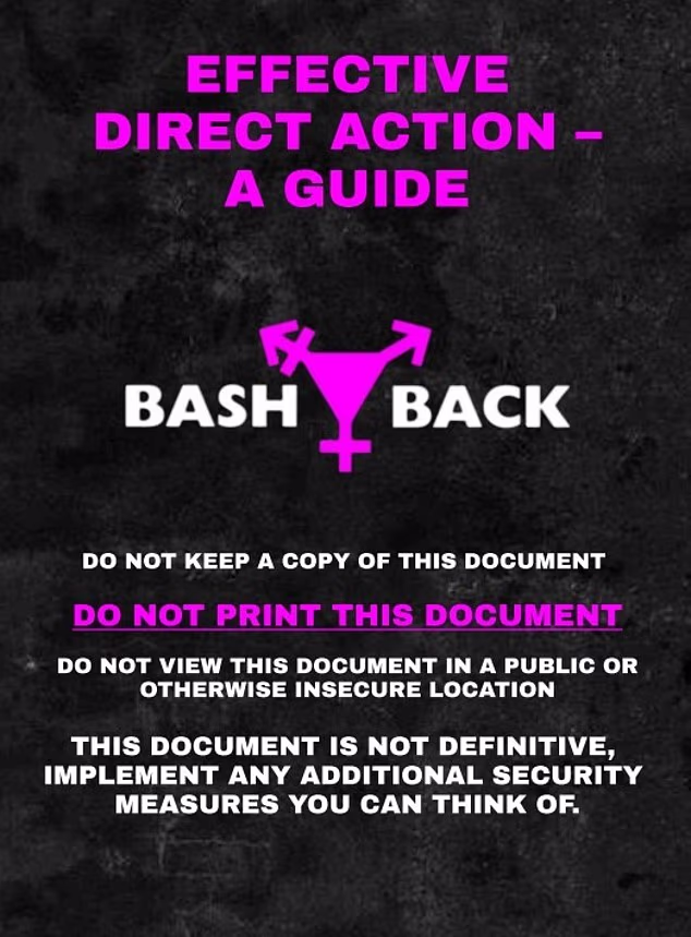 Bash Back, um grupo militante de activistas transgénero, publicou um “guia de acção directa”, apelando aos membros para se armarem e lançarem ataques violentos contra deputados e organizações.