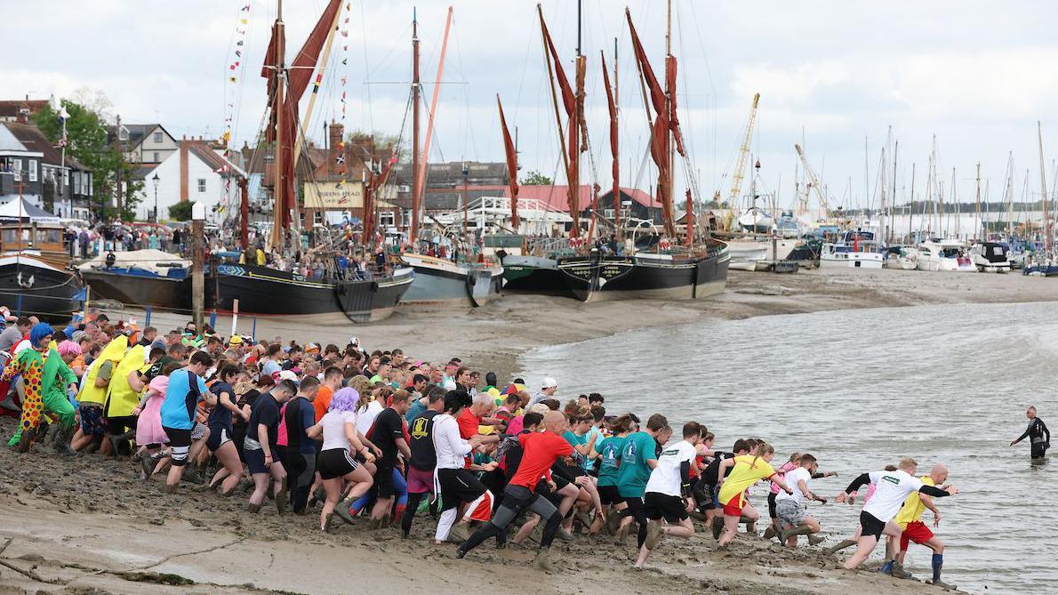 D Evento mundialmente famoso Os competidores correm em um trecho de 440 metros (1.443 pés) do rio Chelmer, em Essex.