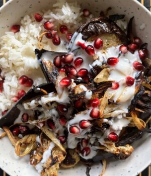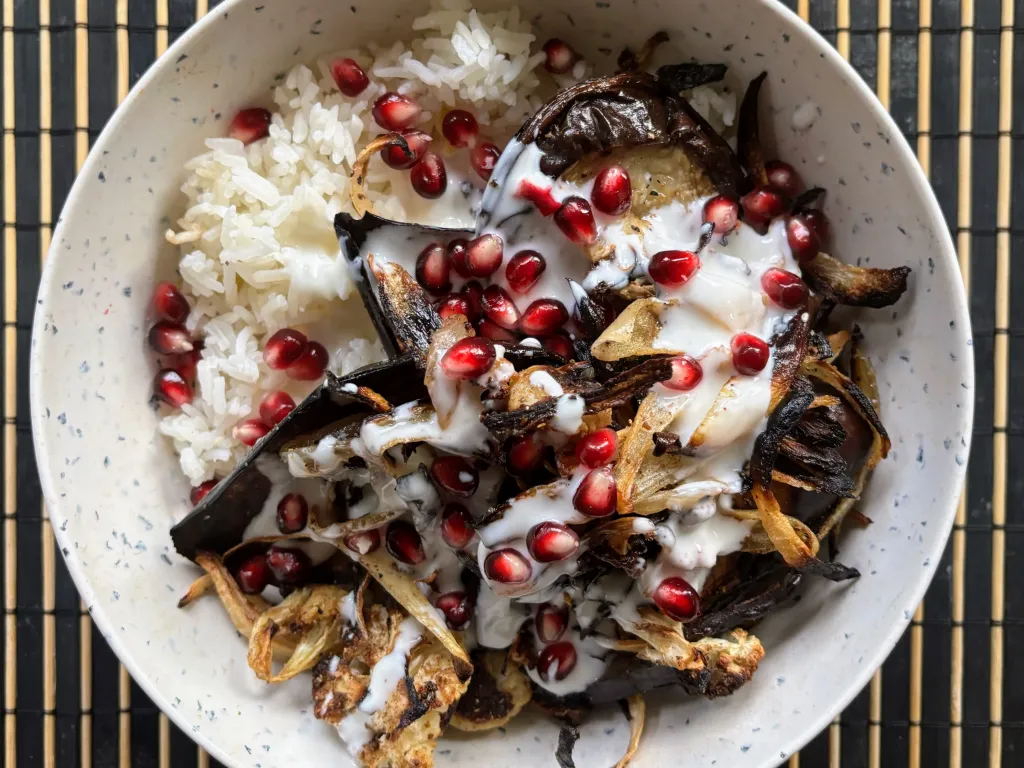 Essas especiarias garam celebram o sabor ousado e a abundância sazonal das colheitas que caem. Couve-flor Bhuna, berinjela cremosa e travesseiro sincero formam a base deste prato nutritivo, todo picante com especiarias e caramelizado na perfeição em forno quente. Um simples molho de iogurte lamini adiciona brilho e sabor, enquanto, por outro lado, um punhado de suculentas sementes de romã explodem em doce e colorido a cada mordida. Sirva com arroz basmati flopfi, esta tigela é tão animada quanto uma semana de mira confortável ou um jantar de pedra.