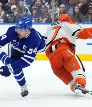 TORONTO (AP) – O capitão do Toronto Maple Leafs, Auston Matthews, deixou o jogo na noite de quinta-feira contra o Anaheim, depois que o defensor Radko Gudas sofreu uma lesão no joelho.