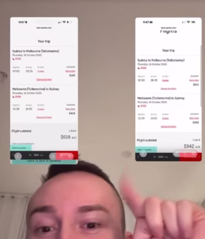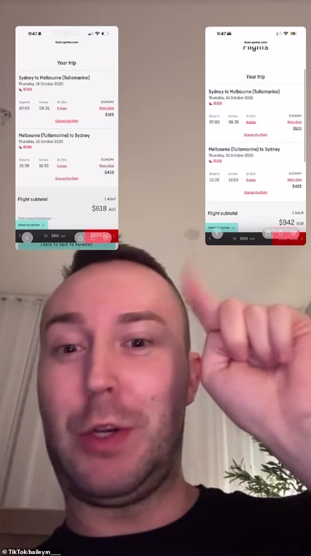 O homem de Sydney, Bailey McLinshaw, estava tentando reservar um voo de volta de Sydney para Melbourne na noite de terça-feira quando percebeu a discrepância.