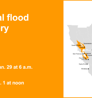 “É possível inundar até 1,4 pés acima do nível do solo em áreas baixas perto da costa e cursos de água das marés”. NWS São Francisco CA. “No medidor de marés de São Francisco, as marés altas devem ser: 1,2 pés acima do normal (7,02 pés MLLW) às 7h34 de quinta-feira, 29/01, 1,1 pés acima do normal (6,98 pés MLLW) às 8h34 de sexta-feira, 30/01, 1,4 pés MLLW 1,2 pés acima do normal (sábado) 31/01, 01/02 às 10h22 1,3 pés acima do normal (7,16 pés MLLW) Essas previsões incluem tempestades de até 0,4 pés que aumentarão as marés astronômicas e ameaças de inundação 90 minutos antes ou através de São Francisco.