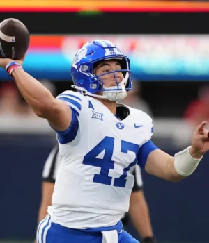 No quarto período, a BYU lutou com uma desvantagem de 10 pontos, enquanto Bachmiyar empatou de 24 a 24 no controle ao abrir um touchdown de 2 raspões.