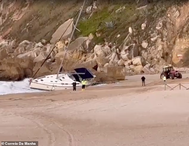 O ataque da orca ocorreu ao largo da costa da Nazaré enquanto a família viajava de Lisboa para o Porto. Imagem: O barco tombou de lado ao chegar à costa