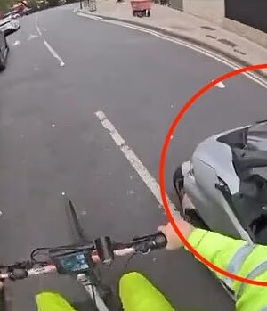 Ele conseguiu chegar ao residencial Mildenhall Road, mas o ladrão determinado se recusou a desistir, forçando o ciclista elétrico a permanecer na calçada para manter distância.