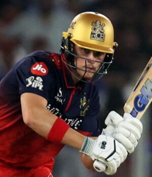 O canhoto Bethel, jogando sua terceira partida da temporada após uma lesão na Inglaterra e no companheiro de equipe do RCB, Phil Salt, acertou um quatro, mas acertou seu quinto lançamento na perna quadrada.