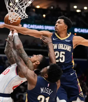 NOVA ORLEANS (AP) – Sadiq Bey marcou 25 pontos, Trey Murphy somou 23 e o New Orleans Pelicans superou um buraco de 18 pontos para vencer o Los Angeles Clippers por 124-109 na noite de quarta-feira.