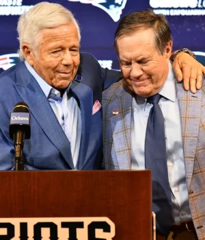 Robert Kraft sobre Bill Belichick: “Independentemente das diferenças pessoais entre Bill e eu, acredito firmemente que o histórico e o conjunto de trabalho de Bill Belichick falam por si.” (Foto de Matthew J. Lee/The Boston Globe via Getty Images)