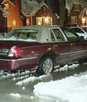 As ruas de Detroit se transformaram em lagos congelados depois que o clima muito frio causou o rompimento das redes de água.