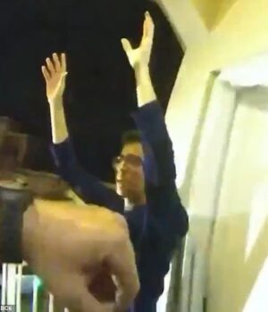 Nas filmagens que ele é ouvido dizer aos policiais que há uma criança dentro de quem ele não tem dano