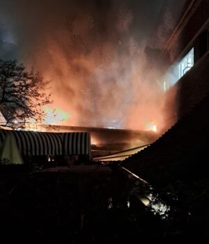 Imagens dramáticas do bar em chamas foram divulgadas pela LFB na plataforma de mídia social X.