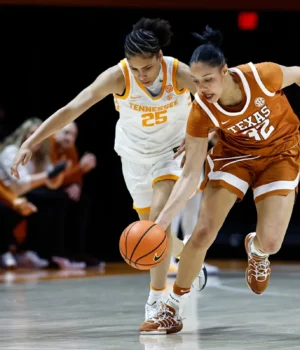 Os Longhorns (24-3, 9-3 na Conferência Sudeste) lideraram por 10 pontos no meio do quarto período. As Lady Volunteers (16-7, 8-3) diminuíram a diferença com uma cesta de 3 pontos de Johnia Barker e duas de 3 pontos de Talesia Cooper.