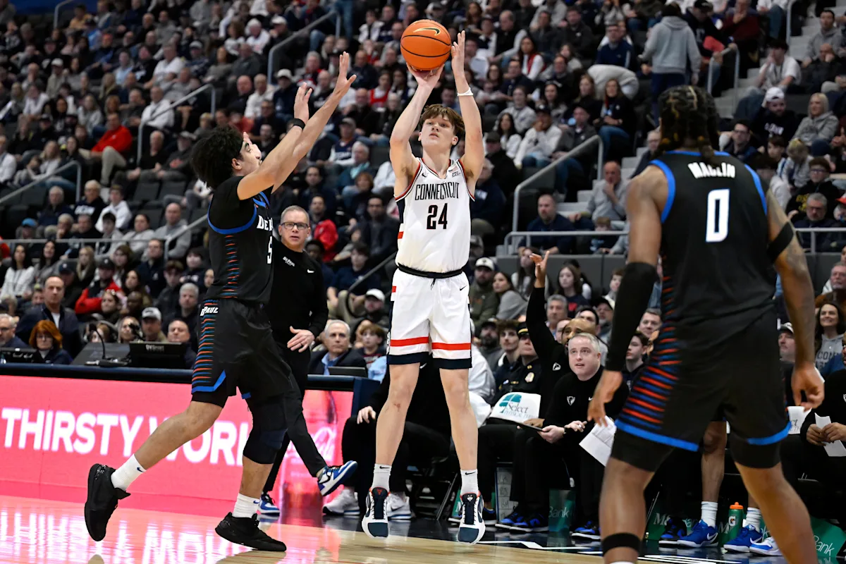 UConn alcançou sua primeira vantagem de dois dígitos no primeiro tempo, quando Jayden Ross acertou três lances livres após sofrer uma falta em uma cesta de 3 pontos. Theo Pierre-Justin acertou um par de três pontos durante uma corrida de 10-4 para DePaul, que errou 12 de seus primeiros 15 arremessos.
