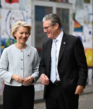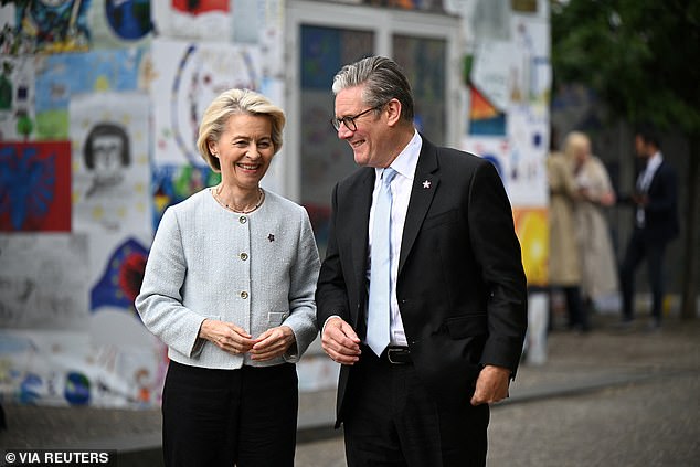Um sucesso tardio na discussão abriu o caminho para a Care Starmer divulgar um acordo de ‘redefinição’ para a Care Starmer em uma reunião com Ursula von Deer Lenn em Londres (retratada na semana passada)