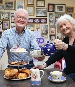 ‘O Dia do Chá para Alzheimer é quinta-feira, 7 de maio, e Brian e eu adoraríamos que você se juntasse a nós. Você pode participar como quiser. Você pode organizar uma grande festa do chá em seu jardim ou mantê-la simples a chaleira Apareça e compartilhe uma xícara com os amigos. O mais importante é que você esteja lá. Inscreva-se hoje. É realmente muito importante’.
