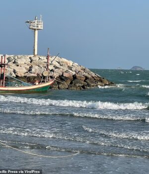 O aposentado de 75 anos ficou preso em ondas profundas enquanto sua namorada tailandesa observava de uma praia na cidade costeira de Hua Hin (foto de arquivo)