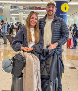 Os residentes de Dubai, Eoin Campbell, 32, e Kate O’Neill, originária da Irlanda do Norte, disseram que estavam voltando em uma pausa programada para ver sua família.