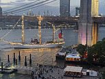 Brooklyn Bridge bateu no barco em imagens que dirigiam a mandíbula como visitantes chocados assistindo do píer