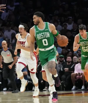 MIAMI (AP) – Jaylen Brown marcou 43 pontos, Jayson Tatum teve seu primeiro triplo-duplo da temporada e o Boston Celtics aproveitou o poder de um primeiro quarto recorde para vencer o Miami Heat por 147-129 na noite de quarta-feira.