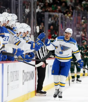 Logan Mailloux e Alexey Toropchenko também marcaram para o St. Louis, e Joel Hofer parou 22 chutes.