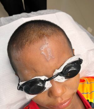 “Não estava apenas na testa dele. Ele tinha mais de dez manchas na perna, todas as quais conseguimos remover para ele.