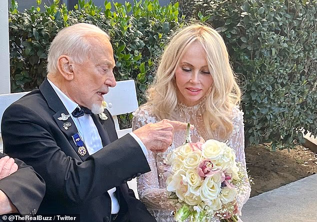 O casal realizou um casamento pequeno e íntimo no aniversário de 93 anos de Aldrin em um parque local perto de sua casa. ‘Foi um dia lindo’, disse ele pessoas.