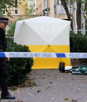 Os serviços de emergência correram para Elthorne Park, em Islington, norte de Londres, pouco antes das 21h de segunda-feira, depois que a vítima de 20 anos foi atacada.