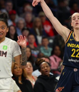 O guarda da estrela da febre de Indiana, Catlin Clark, lembra os fãs da WNBA sobre suas outras habilidades de tiro mundial durante o jogo de Presson de sábado contra o Atlanta Dream no sábado.
