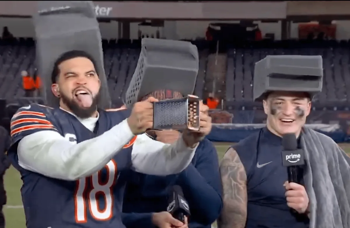Se os Packers e seus fãs estavam chorando após a celebração do vestiário da Semana 16 de Moore, eles ficarão muito chateados ao ver Caleb ralar um pouco de queijo de verdade no set.