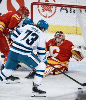 Os tubarões de San Jose tiveram a oportunidade final de terminar o jogo espoleiro e o Calgary Flems já incerto -Offs no domingo à noite.