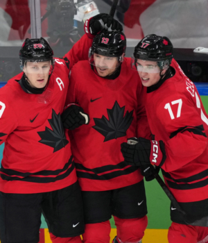 Celebrini e Team Canada enfrentarão agora o vencedor da outra semifinal de domingo, EUA x Eslováquia, na sexta-feira. O extremo do Sharks, Pavel Rejender, tem quatro pontos para a Eslováquia no torneio.