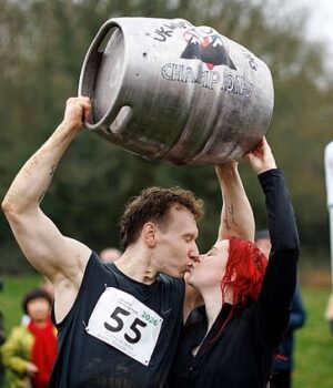 Supostamente datada de séculos atrás, a corrida faz com que as pessoas coloquem seus parceiros nas costas, na frente ou nos ombros antes de completar uma zona de respingos de colinas, fardos de feno, baldes de água e pistolas de água.