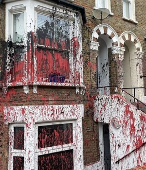 Moradores de Lowfield Road, Kilburn, noroeste de Londres, acordaram ontem de manhã e encontraram suas paredes cobertas de respingos de tinta – o que um homem comparou a “uma cena de crime”.