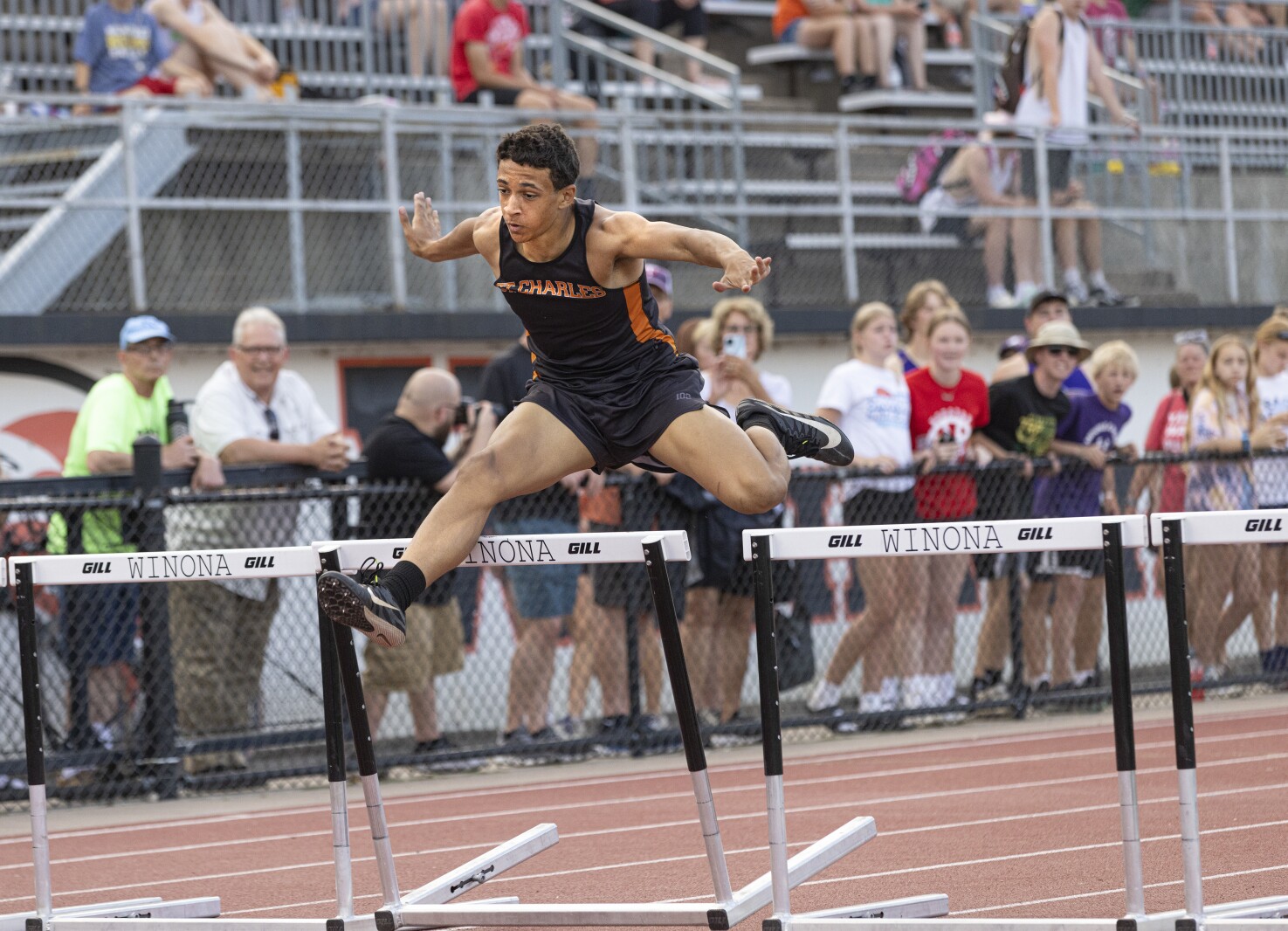 110 obstáculos – Josh Kie-Bafur (século) 14.12, Chris Hilton (St. Charles) 14.79, Savi IVA (John Marshal) 15.53, Charles Davidson (St. Charles) 15.90, Ethan Standel (Caldonia/Spring Brove) 16.10, Samuel.18, Samuel. Derbin 16.18, Falev).