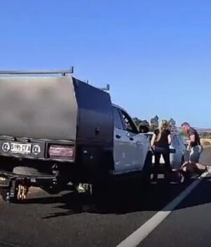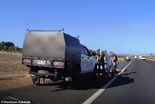 Duas pessoas foram vistas como brigas perigosamente em torno da movimentada rodovia Adelaide