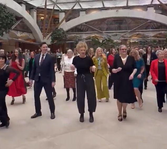 Na manhã de quarta-feira, o grupo de mais de 40 parlamentares pisou e girou sob o átrio de vidro da Portcullis House sob a orientação da estrela e coreógrafa do Strictly, Kai Widdrington.