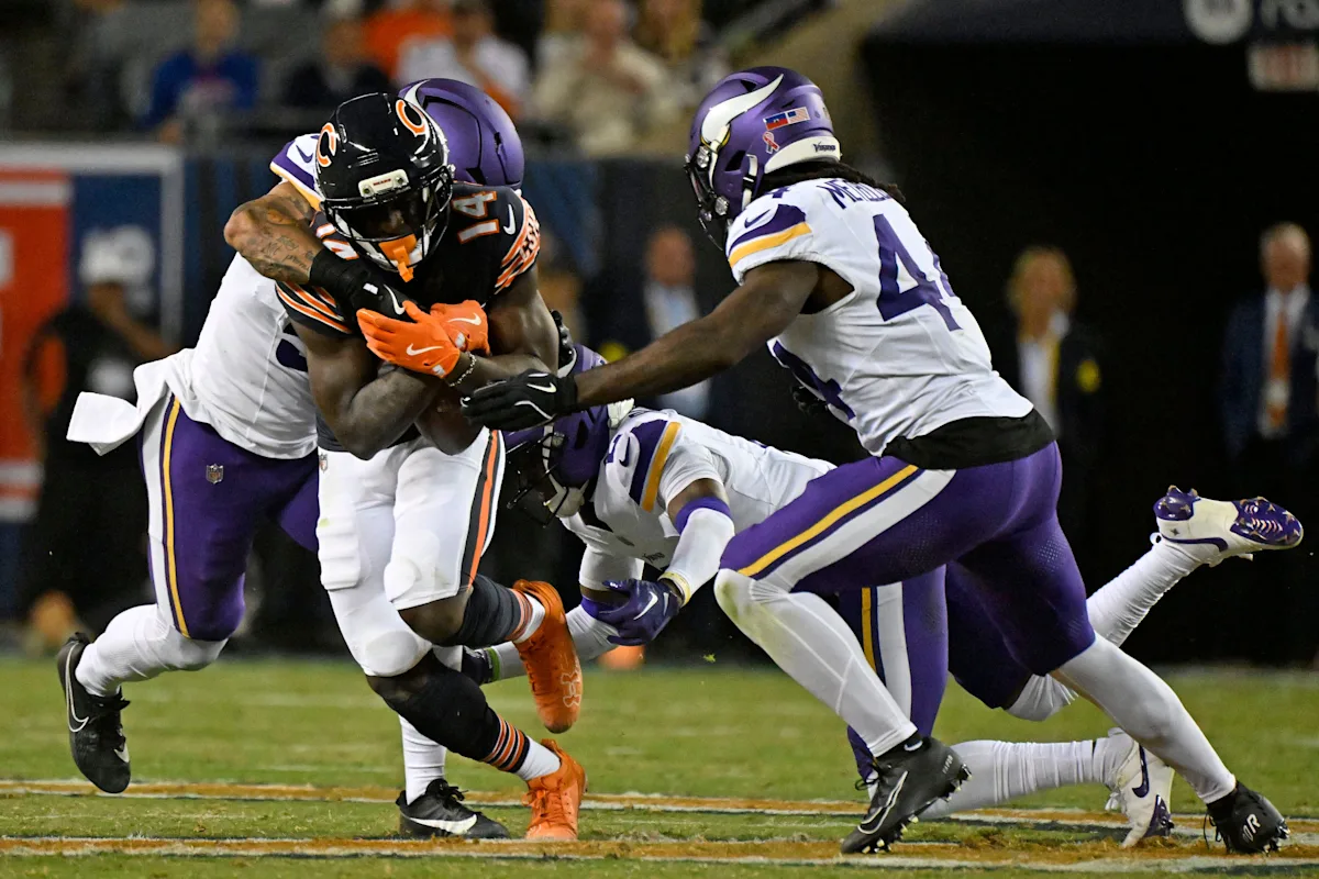 Minnesota manteve os Bears com 317 jardas em seu confronto da semana 1, o primeiro jogo do Chicago sob o comando de Ben Johnson. Agora, eles têm nove jogos disputados. Se os Vikings quiserem ter uma chance de vencer, eles precisam desacelerar o ataque dos Bears para não terem que entrar em uma disputa de pênaltis para a qual JJ McCarthy pode não estar preparado neste momento de sua carreira.