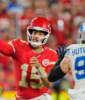 Chefes de Kansas City O quarterback Patrick Mahomes falou aos jornalistas após a vitória semanal contra o Detroit Lions, que se tornou o jogador mais rápido da história a alcançar um passe para touchdown de 300 corridas quando você inclui a postagem.