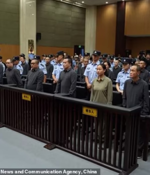 A China executou 11 pessoas ligadas a gangues criminosas de Mianmar, incluindo “membros-chave” de operações fraudulentas de telecomunicações (na foto, algumas de suas famílias criminosas condenadas em outubro no Tribunal Popular Intermediário de Wenzhou, na província de Zhejiang, no leste da China).