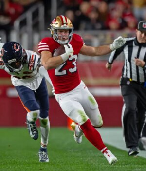 McCaffrey, um All-Pro multifuncional, correu para 1.202 jardas e 10 TDs e pegou 102 passes para 924 jardas e sete TDs. Ele desempenhou um papel fundamental ao ajudar o San Francisco 49ers, devastado por lesões, a vencer 12 jogos.