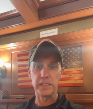 “Ei, esta mensagem é para Wayne, esta é para Corey Lewandowski”, diz o chefe de gabinete de Noem em um tom levemente animado, parado na frente de uma foto emoldurada de globos oculares.