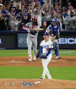 O arremesso inicial é aterrorizante. Clicando no crime. Os Dizers de Los Angeles abriram o título de Postation of the Defense Roll em sua World Series.