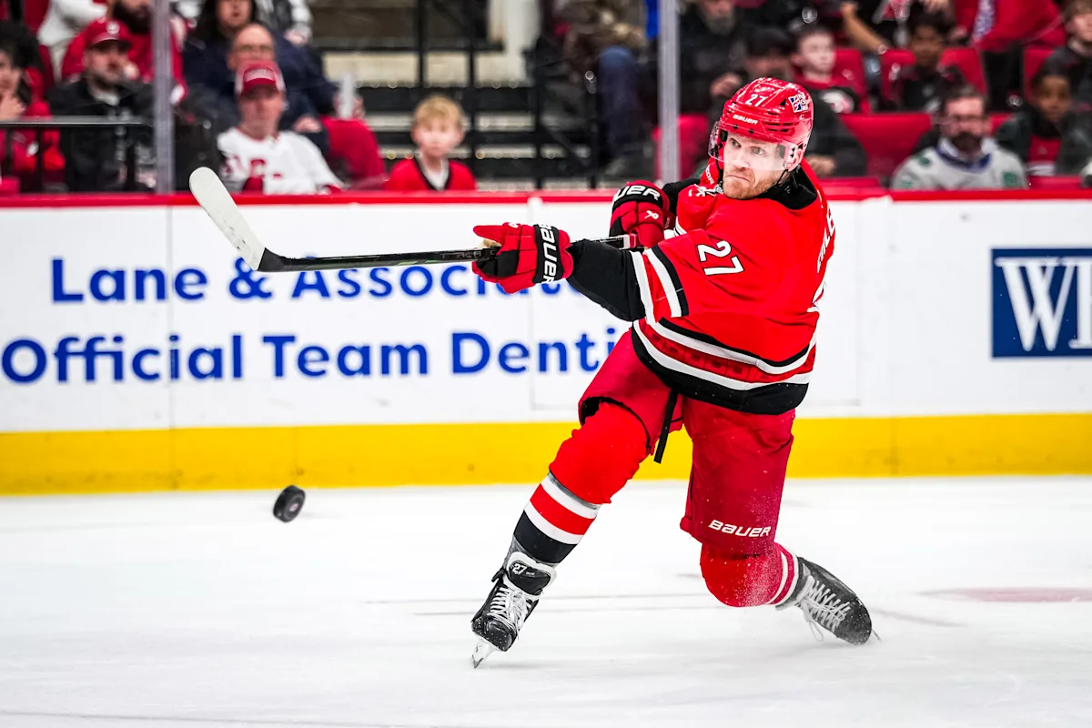 Andrei Svechnikov marcou mais um PP para iniciar o terceiro. Momentos depois, Ehler marcou outra contagem de powerplay, a segunda da noite.