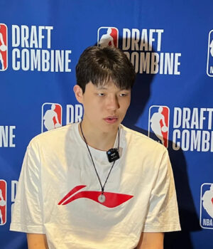 Um metro e oitenta e 1 da Young-China, 253 libras um dos jogadores internacionais na combinação de Chicago Draft desta semana, está sendo cumprida, medida e mantida através de exercícios. Ele está participando de 5 -5 gritando sob vigilância de cada executivos da equipe da NBA.